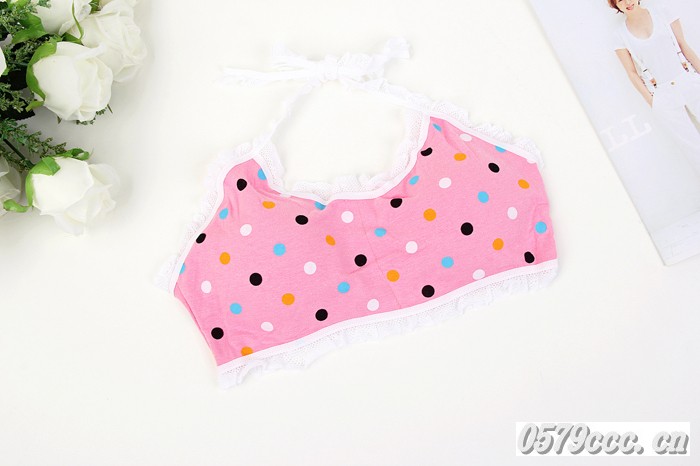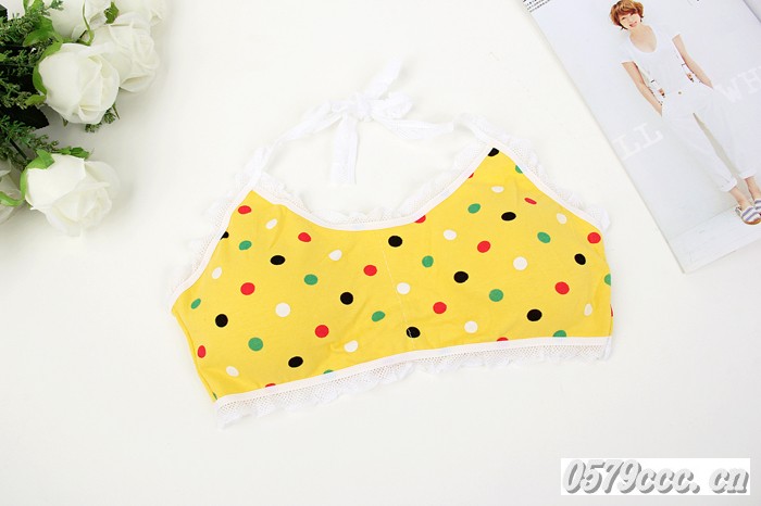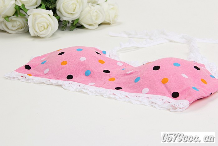女生純棉七彩小圓點(diǎn)系帶抹胸 少女發(fā)育期蕾絲花邊海綿杯可取文胸
